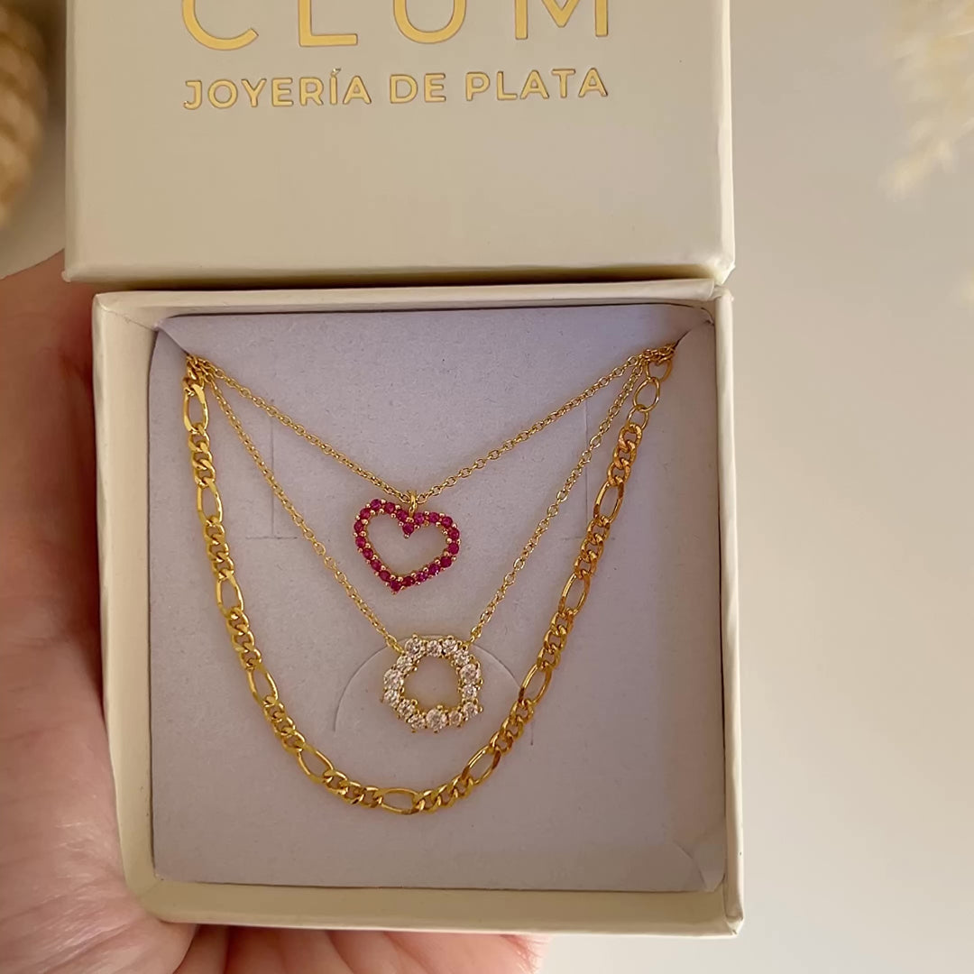 Precioso collar con un colgante en forma corazon decorado con circonitas incrustadas. ¡Saca tu lado romántico!